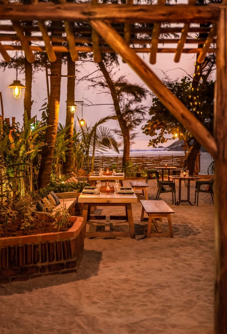 Resilient Craft: The outdoor furniture utilizes brick and ferrocement countertops. These materials were chosen specifically for their ability to withstand the poetic but harsh reality of tropical beach weather—salt, wind, and humidity.