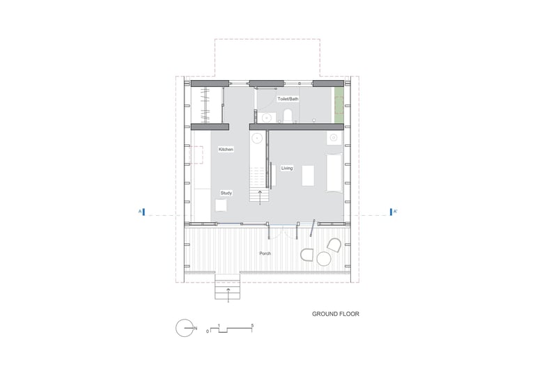 Traditional Craftsmanship: Built entirely on-site without heavy machinery, the cottage honors traditional carpentry techniques and joineries. Remarkably, no metal was used in the framing of the structure except for the base plinth beam.