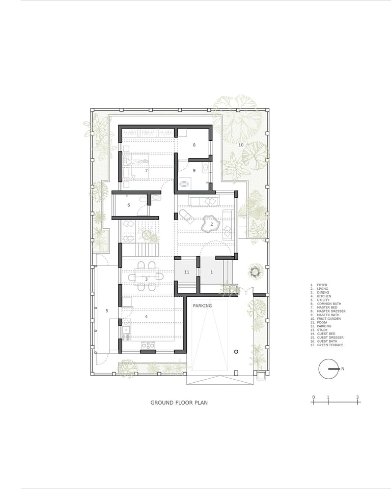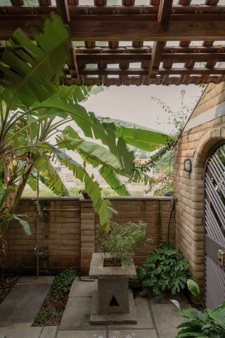 The home is designed around the "slowness" of South Bengaluru life, where nature is a collaborator rather than an accessory: