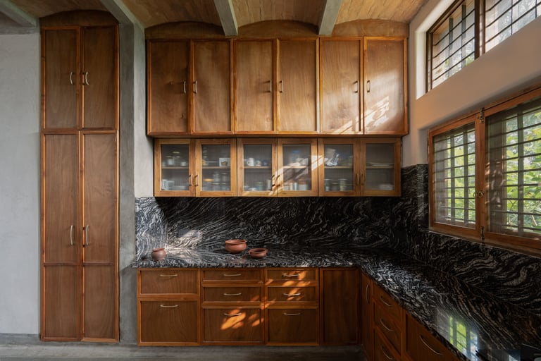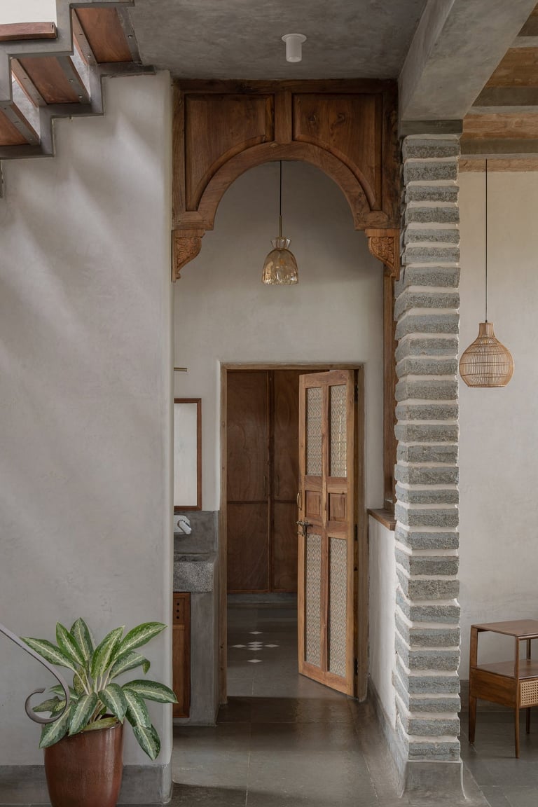 Thresholds of Belonging: From the Tulsi Katta at the entrance to the east-facing kitchen windows that catch the golden morning sun, the house honors a way of life valued through ritual.