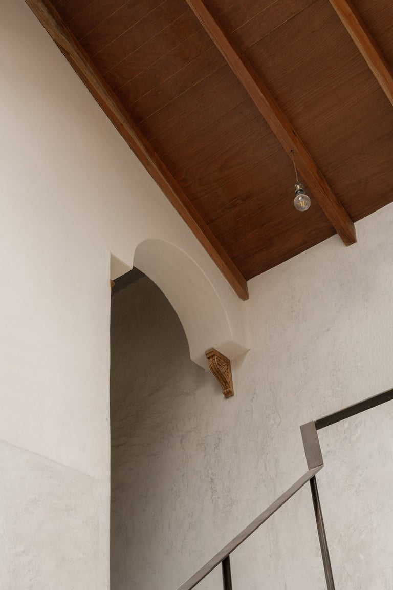 Preserved Imperfection: Jack-arch roofs and timber beams are left honest and visible, polished only with natural oils to celebrate the hand-built effort behind the craft.