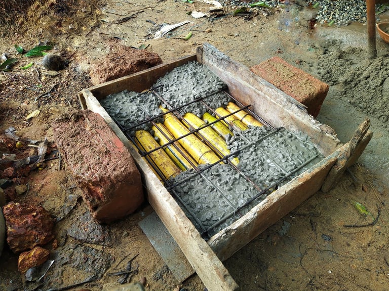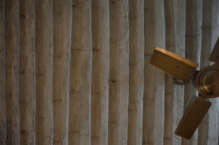 Innovative Texture: By using locally sourced bamboo as scaffolding under our slabs, we created a "fossil" texture that celebrates organic geometry. This technique significantly reduced the volume of concrete required.