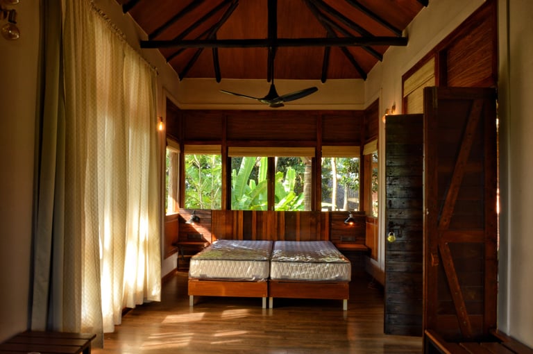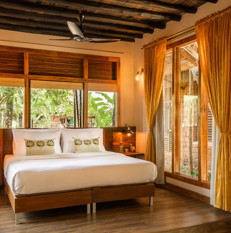 A project that lies at the very heart of our journey, the Panchabhuta Conservation Foundation is an exploration of rewilding—a conscious effort to bring the untamed rhythm of nature back into our lives. Our journey began with the revival of an existing NGO, evolving it into a boutique eco-resort that generates sustainable income through local tours and the sale of artisanal goods like kokum butter and natural soaps.