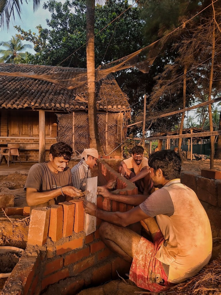 Reviving Livelihoods: We worked hand-in-hand with local craftsmen, training them in specialized techniques like oxide plaster and thatched roof construction to revitalize native building practices.